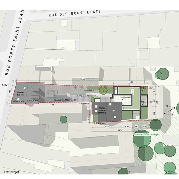 Ce projet de construction s’implante sur une parcelle en plein centre-ville d’Orléans sur laquelle se trouve une maison sur rue ainsi qu’une vieille bâtisse.