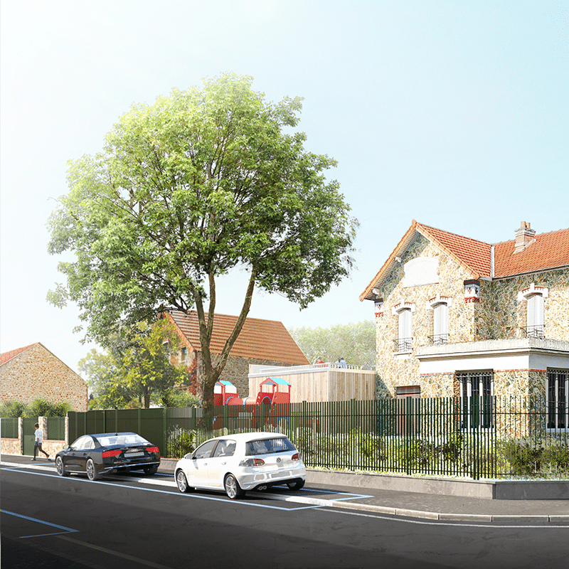 Le site de ce projet de création d’une crèche de 60 berceaux pour La Croix Rouge se trouve dans le centre ville de Draveil. Situé sur un emplacement stratégique – sur le site de l’actuelle crèche en préfabriqués qui a été démolie et sur la même parcelle qu’un édifice protégé conservé -, notre projet s’intègre dans le grand programme de réforme du centre ville en venant compléter les équipements commerciaux et de services présents aux alentours.