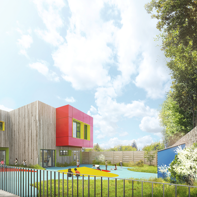 – En R+1 – sans dénaturer la maison classée restant sur la parcelle -, avec de nombreuses ouvertures afin d’amener un apport de lumière maximal, et de permettre aux futurs usagers de profiter des espaces de jeux créés en extérieur de manière optimale et en toute sécurité.