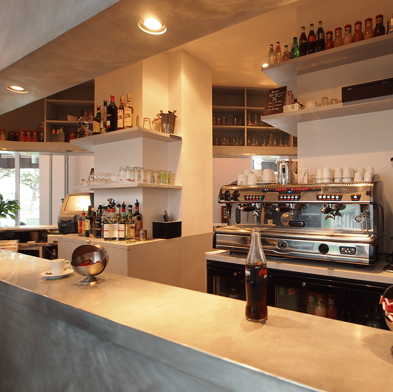 Dans le quartier en pleine métamorphose du 18ème arrondissement de paris, ce projet de bar/restaurant se devait d’être ambitieux. Les matières à l’état brut sont à l’honneur : parquet en chêne massif et comptoir du bar entièrement fabriqué en zinc patiné. La présence forte et élégante de ce monolithe métallique permet la sobriété du reste de l’espace : murs et plafond sont peints en blanc. L’ambiance design et industrielle du lieu est renforcée à la fois par des radiateurs en plinthe de forme cylindriques à ailettes , rappelant ainsi les radiateurs d’antan, et par différentes grappes d’ampoules à filament incandescents suspendues.