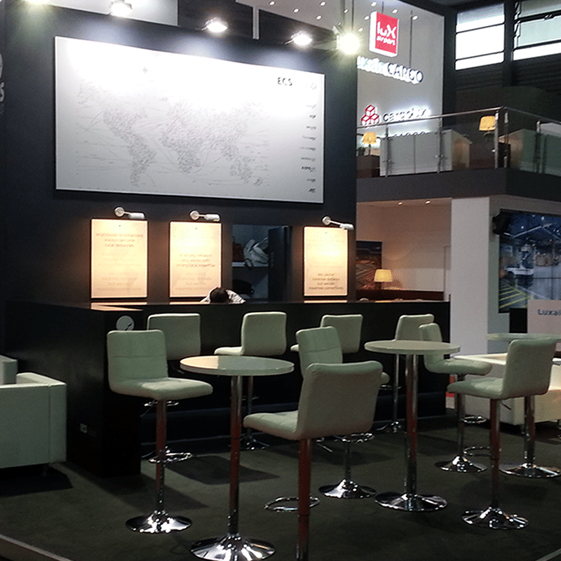 Dans le cadre de divers Salons à travers le monde, l’Atelier MAD a réalisé plusieurs stands évènementiels pour la société de GSSA ECS group. Il s’agit d’une longue collaboration au cours de laquelle, l’Atelier MAD a développé des scénographies telles que :