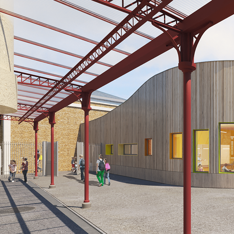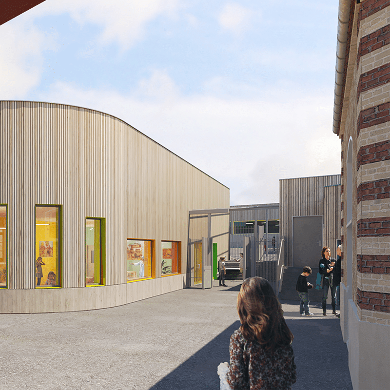 Ce projet offre à l’Atelier MAD l’opportunité d’apporter une réelle valeur ajoutée au groupe scolaire en simplifiant les accès et la distribution des espaces, malgré les importantes variations de niveau entre l’entrée depuis la rue et le fond de la parcelle.
