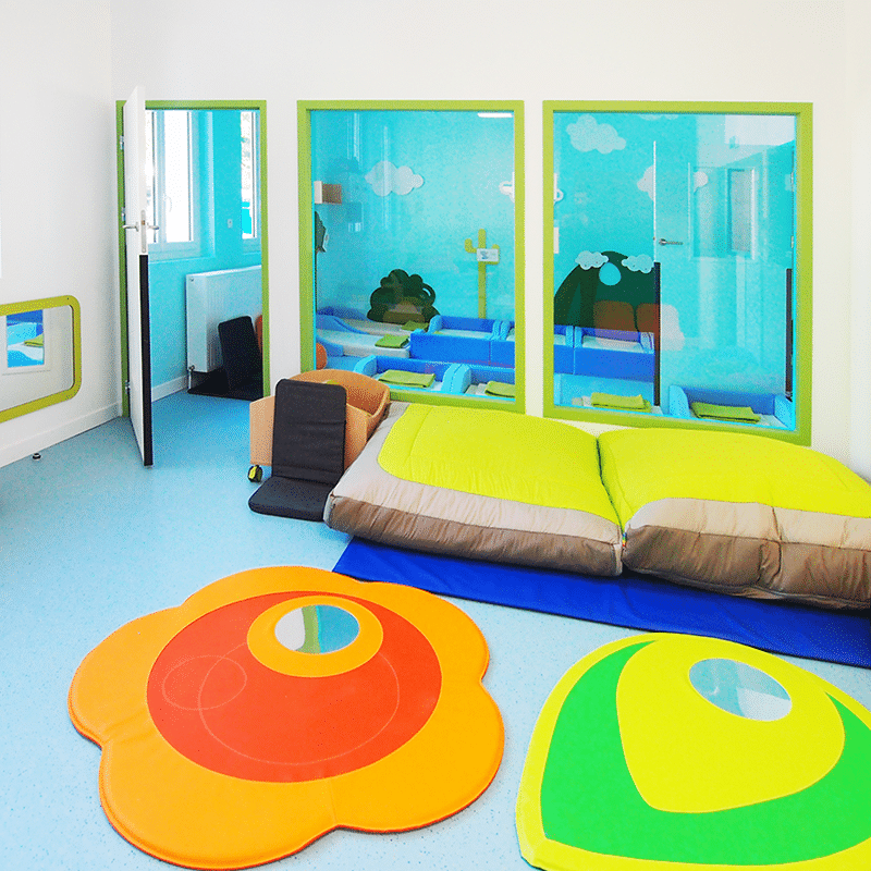 Le parti pris de l’Atelier MAD a donc été de signifier par la couleur ces trois unités. Cela permet une compréhension immédiate et une appropriation aussi bien pour le personnel que pour les enfants.