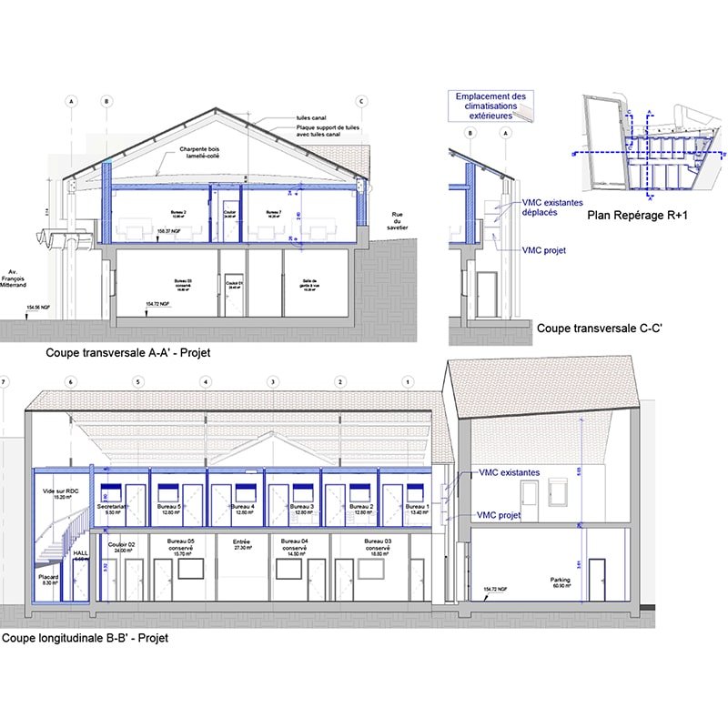 La livraison du projet est prévue en décembre 2023, comprenant l’isolation des façades et l’aménagement des bureaux.